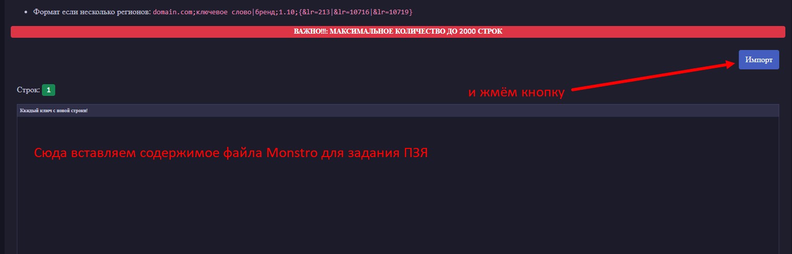 Важно! Импорт поддерживает до 2000 строк. Используйте дробление, если выходите за рамки ограничения!