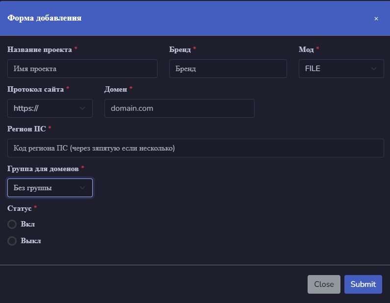 - Название проекта - произвольное название для вашего удобства;