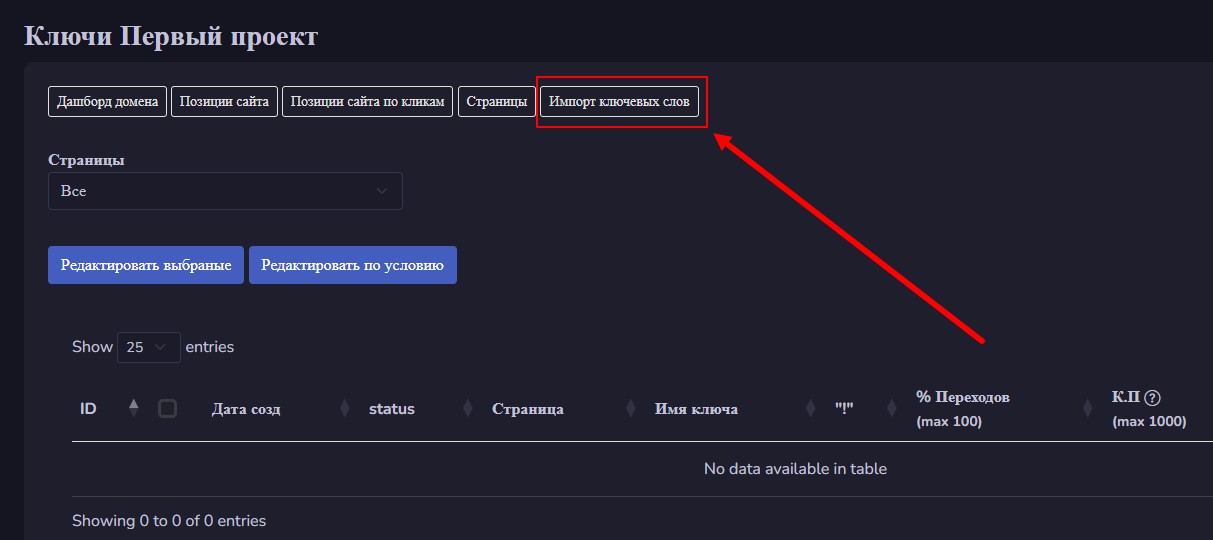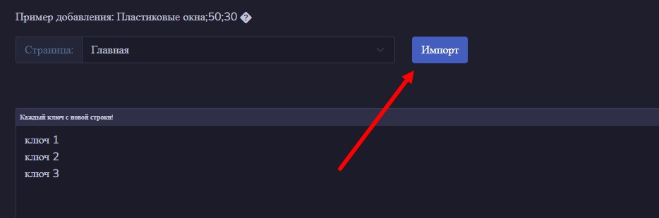 Затем находим кнопку «Импорт ключевых слов» и жмем на нее: