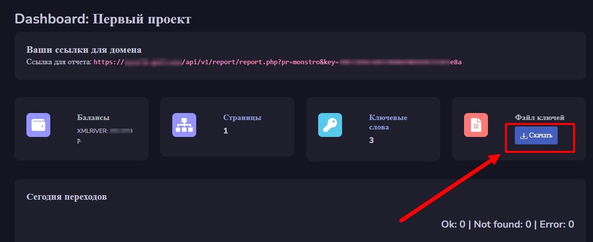 Чтобы получать информацию о переходах по Вашему проекту, необходимо предварительно добавить проект в систему, добавить хотя бы одну страницу сайта и ключевые фразы. Следующим этапом, будет получение ссылки для сбора статистики и настройка задачи в Monstro.